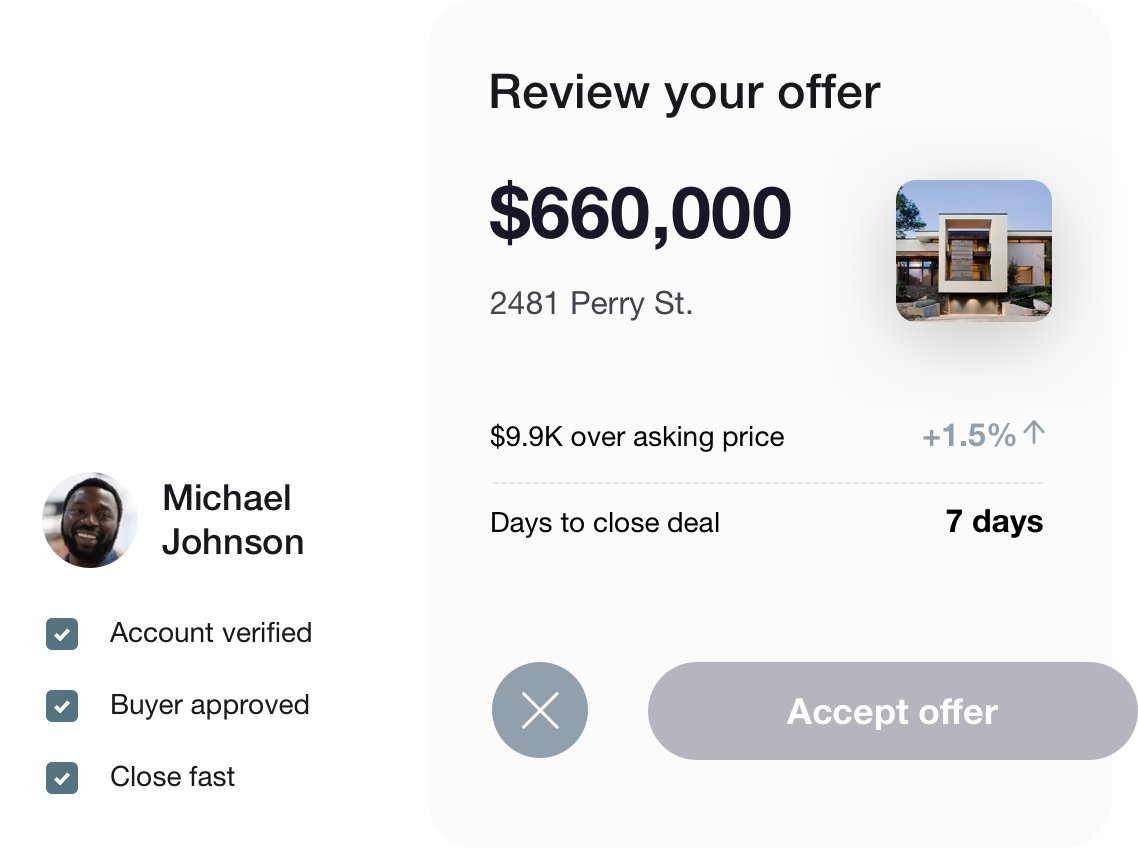 Offers made to sellers on Homerun are qualified to close, providing you with certainty and confidence that the contract won’t fall through because of bank loan contingencies.